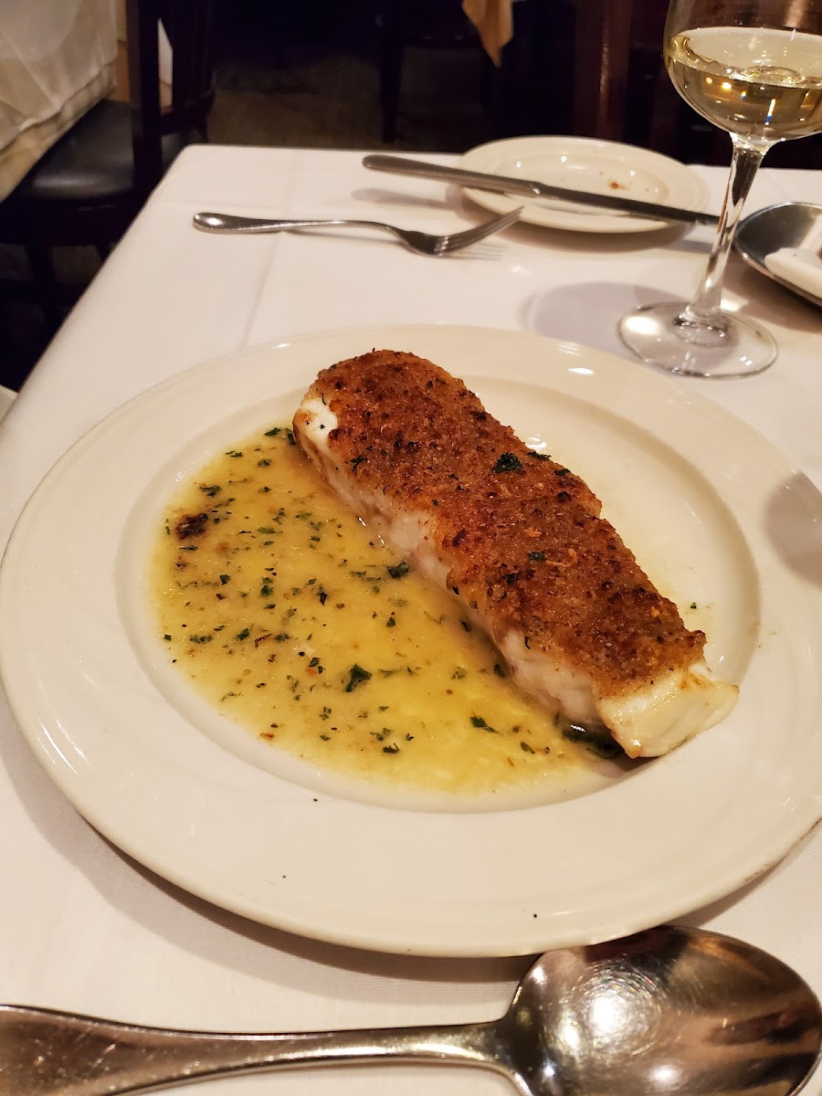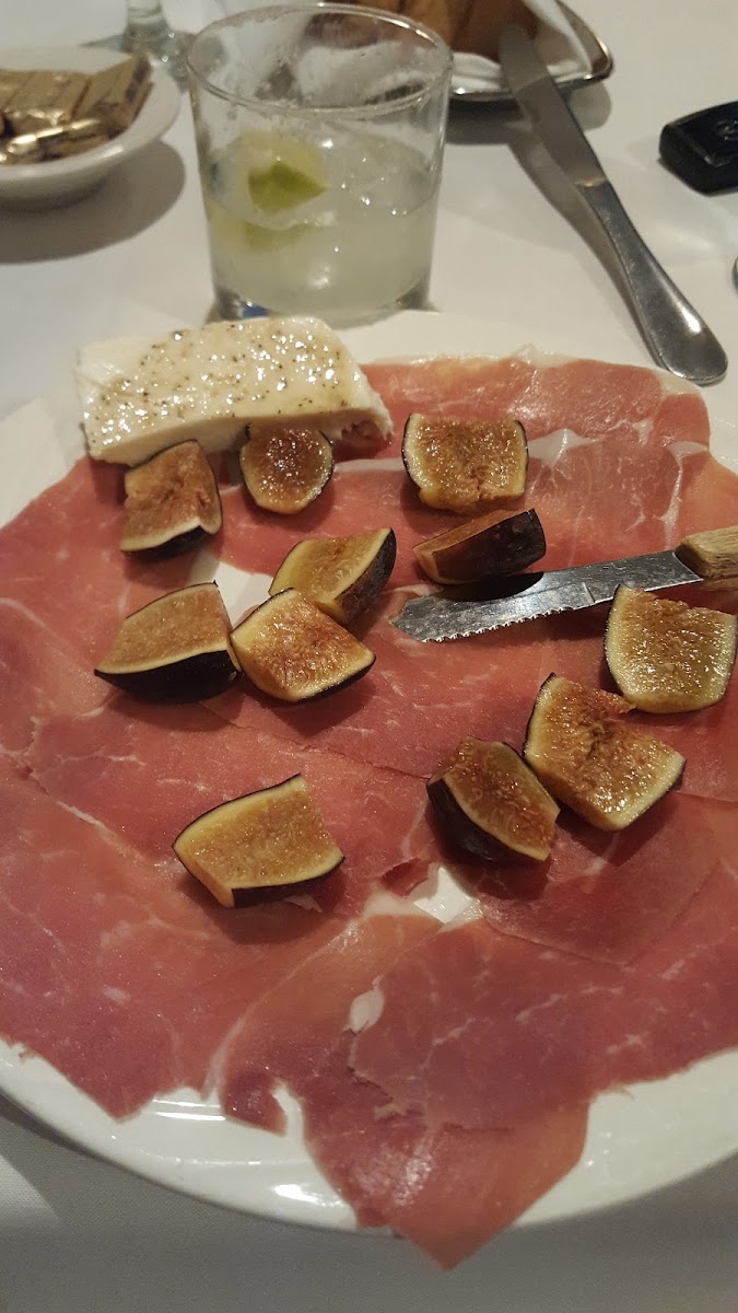 One of my favorite restaurants. Their food is always excellent, branzino is crisped skin and the waiter filets it perfectly, not one bone. Veal chop is large, perfectly browned and juicy. All of their portions are large enough that it makes a perfect lunch the next day. Service is always excellent, attentive without being annoying. Pictured is a fig and prosciutto appetizer.